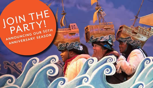 Well, we did. Perhaps you remember a couple years ago that we designed Twelfth Night at the National Arts Centre in Ottawa? This is that very same production, come west for people who live in Calgary to see it, thanks to our friends at Theatre Calgary are presenting Twelfth Night, "as imagined by the Old Trout Puppet Workshop" as part of their 50th Anniversary Season - which, by the way, is is also a pretty big deal.